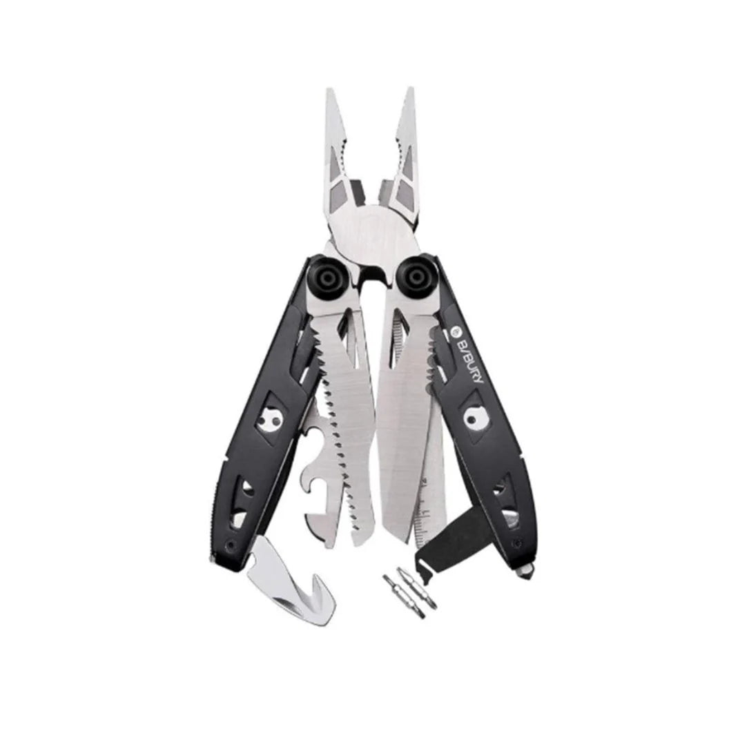 Solid og robust multitool fra Bibury. En god løsning og et midlertidigt alternativ til den store værktøjskasse. Her er alt fra skarp kniv, dåseåbner, bidtang, skruetrækker og forskellige bit-størrelse.
