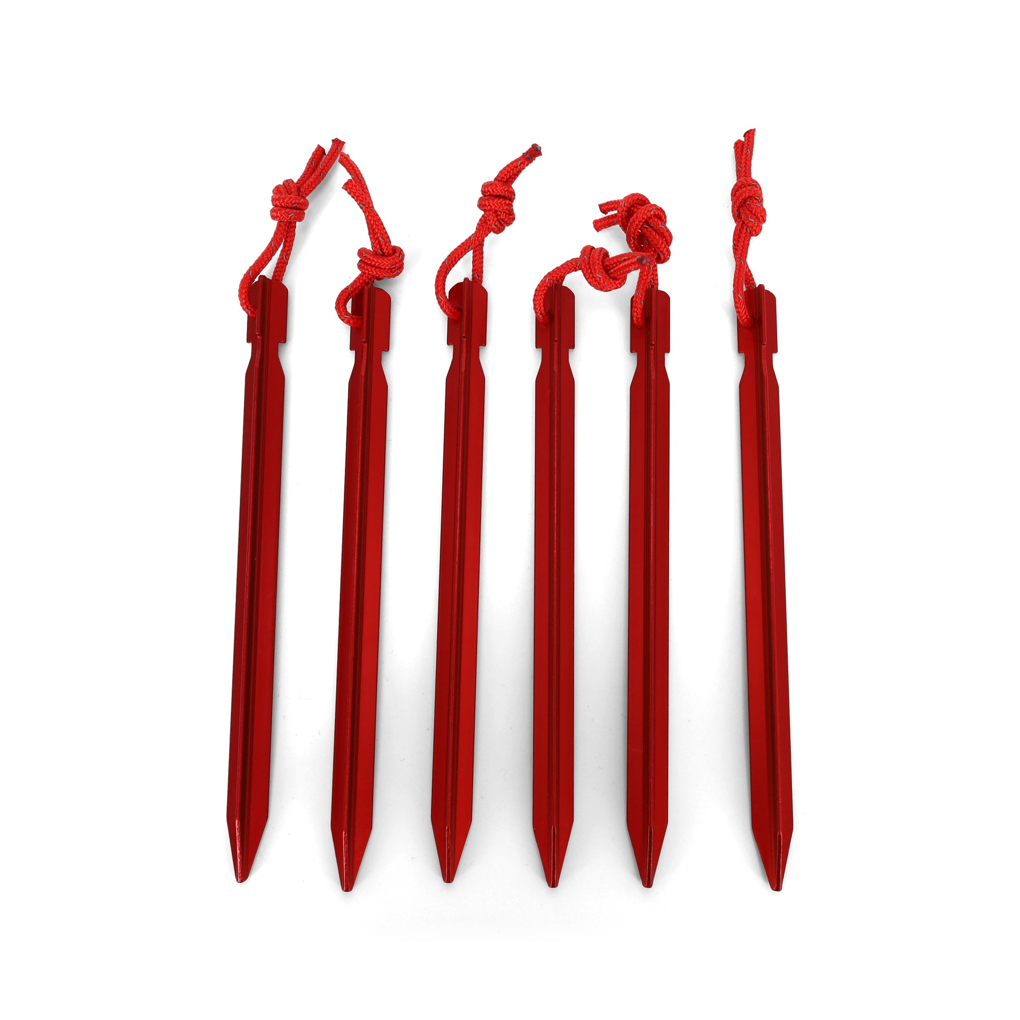 Pløkkerne er lavet i stærk aluminium i en trekantform, som gør dem ekstra holdbare, selv efter mange slag i jorden. Pløkkerne er 18 cm lange og vejer kun 13 gram pr. pløk. Sættet indeholder 6 pløkker.